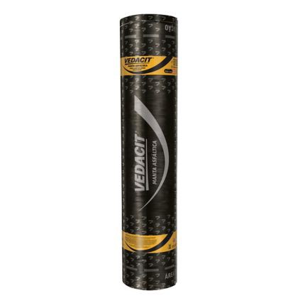 Asfalto modificado com polímeros e elastômeros estruturado com véu de fibra de vidro reforçado e acabamento de polietileno.